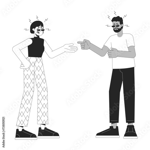 Angry boy and girl. Argument, conflict, negative, emotions, stress, facial expression concepts. Flat cartoon people character vector design illustrations.