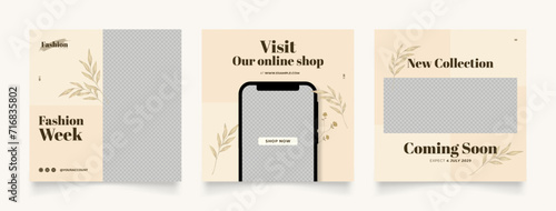 social media template banner blog fashion sale promotion. fully editable instagram and facebook square post frame puzzle organic sale poster. grey white brown floral vector background