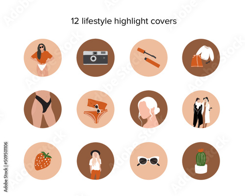 Abstract fashion silhouettes, woman highlights for social media. Vector contemporary art illustration. Boho women blog beauty lifestyle.