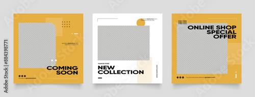 social media template banner blog fashion sale promotion. fully editable instagram and facebook square post frame puzzle organic sale poster. fresh yellow element shape vector background