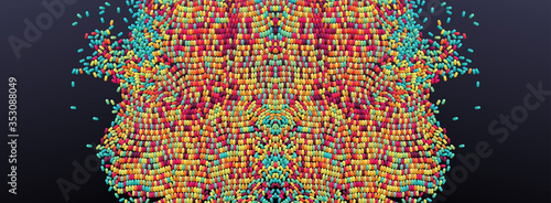 Irregular array or matrix of random dynamic particles. Background breaking down into small fragments. Abstract grid design. Vector illustration for medicine, science, technology or education.