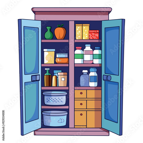 Intricate Vintage Cupboard Illustration Showcasing Classic Cabinetry Design