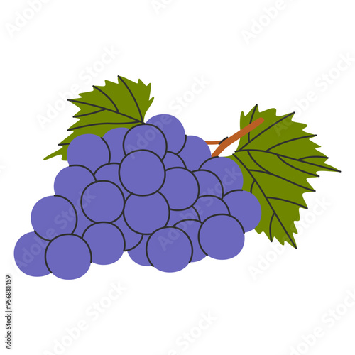 Grapes bunch illustration, vineyard fruit drawing, wine grapes art, grapevine leaves sketch, vintage grape cluster for design and decoration