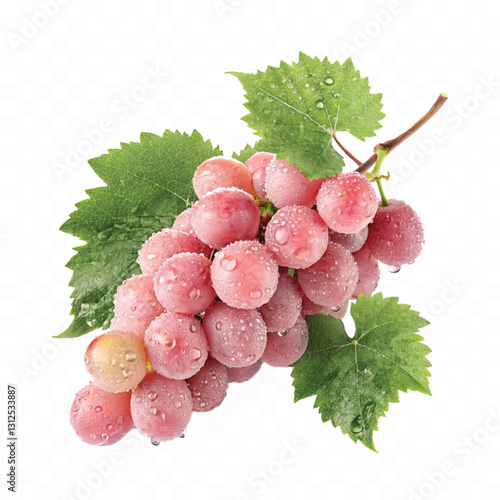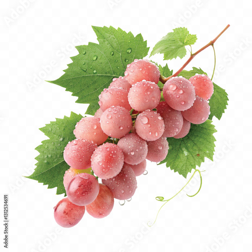 A professional vector of realistic grape cluster with natural shine, placed on a solid plum-colored background