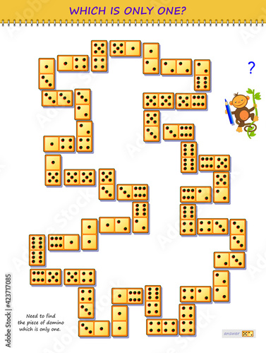 Missing domino Educational Sheet. Primary module for Logic Reasoning. 5-6 years old. Educational Sheets Series