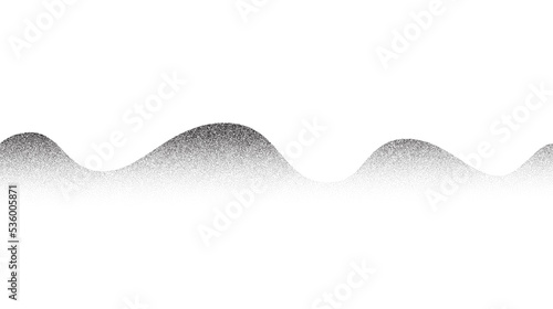 Grainy sand texture. Wavy stippled gradient background. Grunge noise dotwork wallpaper. Black dots, speckles, particles or granules. Vector monochrome