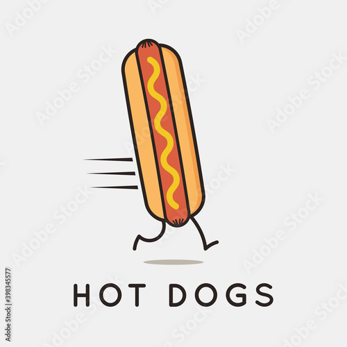 Hot dog logo. Running hotdog on white background