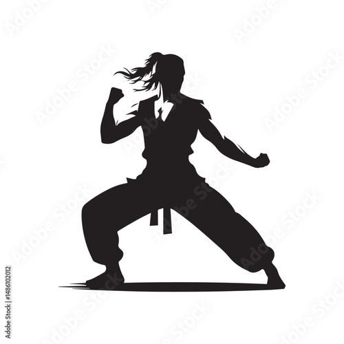 A stylized silhouette of a martial artist, poised in a dynamic stance, showcasing strength and discipline.