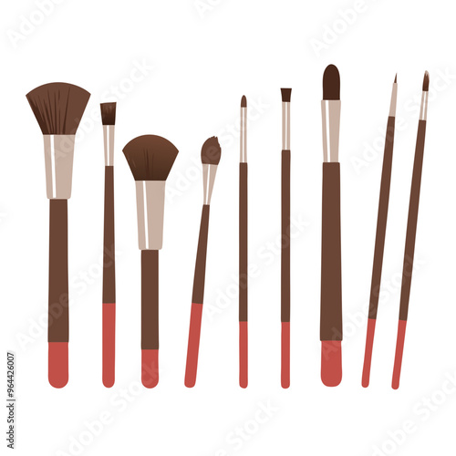 Beauty collection with a set of makeup artist brushes. Beauty make-up and cosmetics background, drawing hands emblem. Vector illustration.