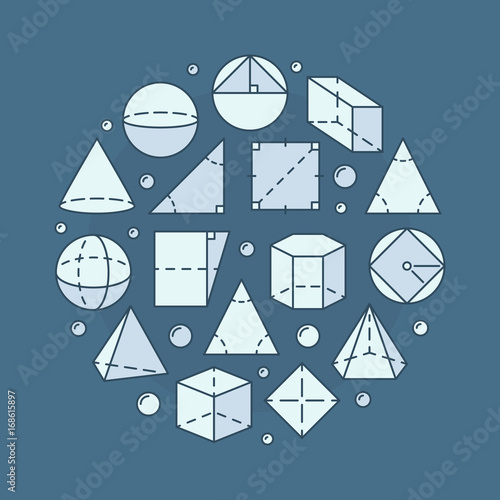 mathematics / algebra / geometry concept: connected maths icons vector illustration