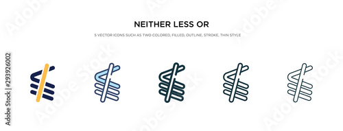 neither less or exactly equal icon in different style vector illustration. two colored and black neither less or exactly equal vector icons designed in filled, outline, line and stroke style can be