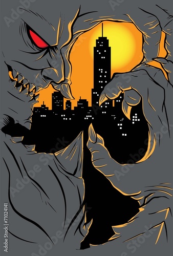 Vector illustration of a swarm of tiny mischievous creatures with sharp teeth and claws.