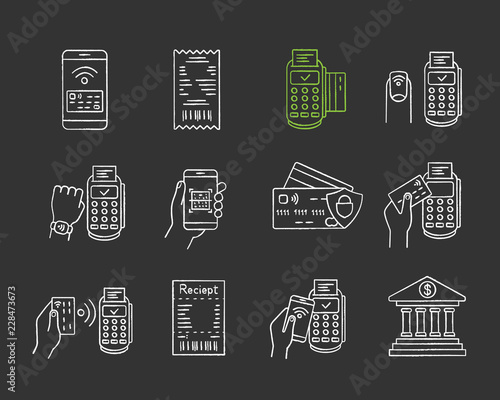 Banking service, successful contact less payment transaction. analyzes bank data.  Pos -terminal and payment systems, set flat vector modern illustration
