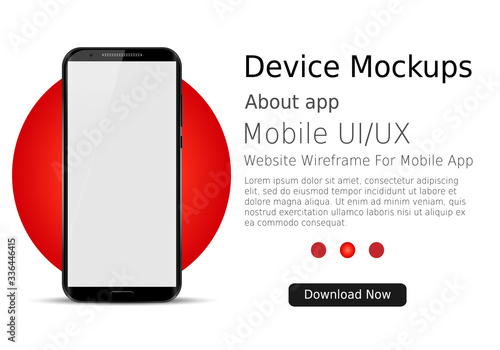 Smartphone blank screen, phone mockup with red circle. Modern template for infographics or presentation UI design interface. Vector illustration