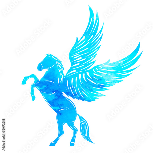 Pegasus mythical winged horse from splash of watercolors. Hand drawn sketch