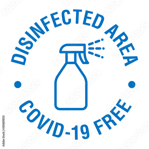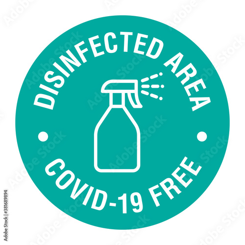 Disinfected area vector sticker label sign. Area free from coronavirus COVID-19.