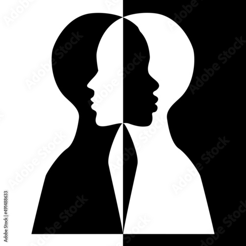 Black and white female silhouettes, vector illustration
