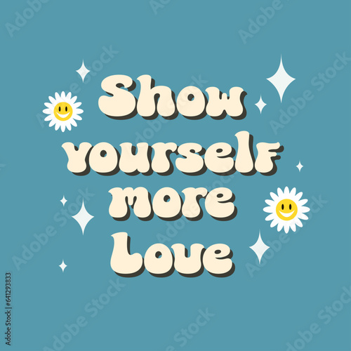 Self love slogan print design in vintage stamp style with flower and ornaments illustrations