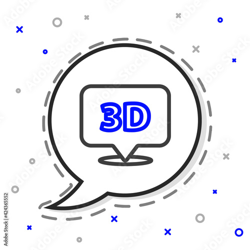 Black line 3D word icon isolated on white background. Blue speech bubble symbol. Vector