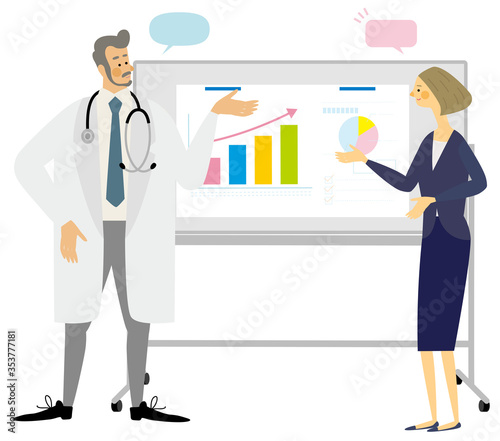 web meeting,オンライン会議,セミナー,グラフ,医者,白衣,イラスト,パソコン