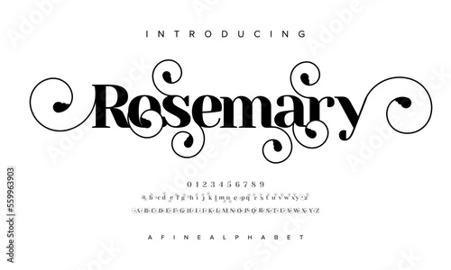 Elegant font alphabet uppercase lowercase and number. Classic lettering minimal fashion designs. Typography modern serif fonts regular decorative vintage concept. Vector illustration
