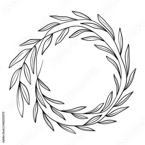 Vector hand drawn wreath of branches. isolated on white background. Silhouette willow branch. Doodle style. Floral frame.