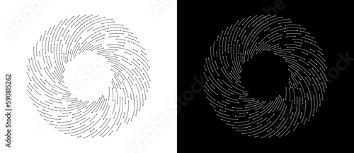 Abstract background with lines and dots. Creative circle as logo or icon. Black lines on a white background and white lines on the black side.