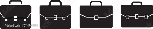 A collection of four black vector silhouettes of businessmen walking and standing with briefcases and bags.