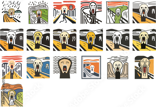Set of variations of famous art work The Scream