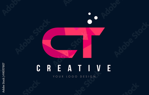 CT C T Letter Logo with Purple Low Poly Pink Triangles Concept