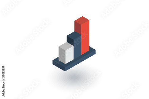 growth graph chart, market success, stock bar up isometric flat icon. 3d vector colorful illustration. Pictogram isolated on white background