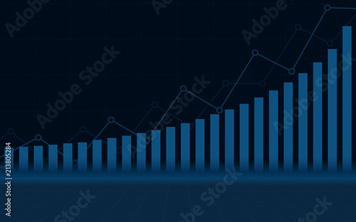 abstract financial chart with uptrend line graph and stock market on blue color background