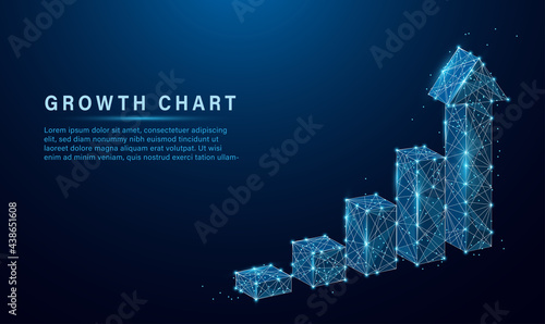 Abstract image of a growth chart in glowing blue. Low polygon or low poly design. particle, and triangle style design.Wireframe light connection structure. Vector wireframe concept.