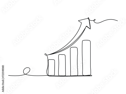 Continuous one line drawing of graph. Illustration vector of bar chart sign symbol. Single line art of increasing arrow up. Flat icon of business growth