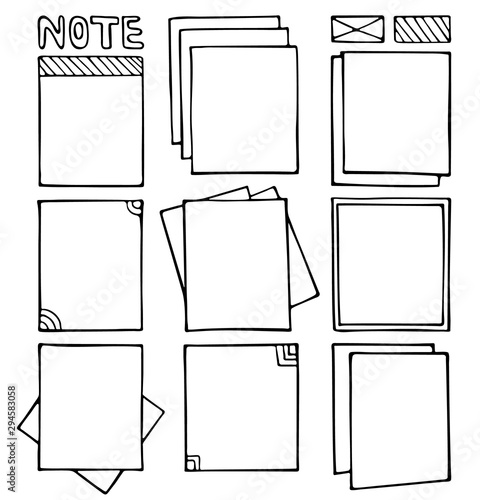 Set of line paper, sticky note, reminder, to-do list, sticky tape and pins. Bullet journal elements in doodle style. Vector illustration on white background