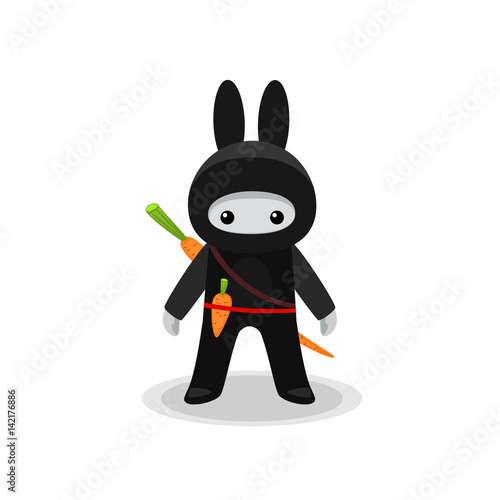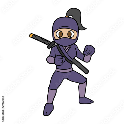 Illustration silhouette of a cute little ninja isolated on a white background.