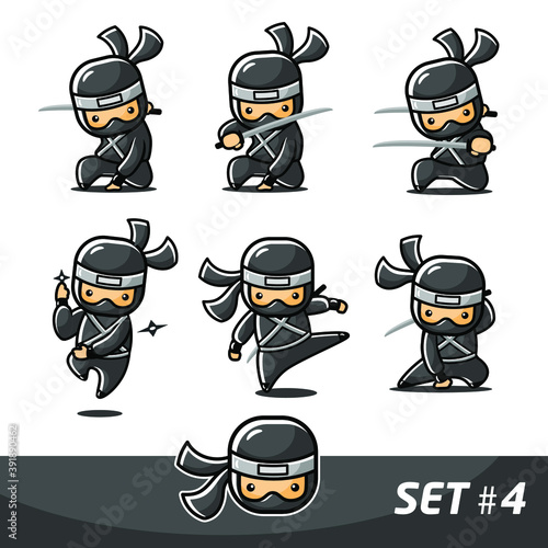 Set of Ninja Warrior logo Design Vector Template. Silhouette of japanese fighter. - Vector