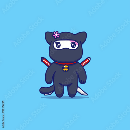 Vector illustration of an isolated ninja cat heat, vector,  png