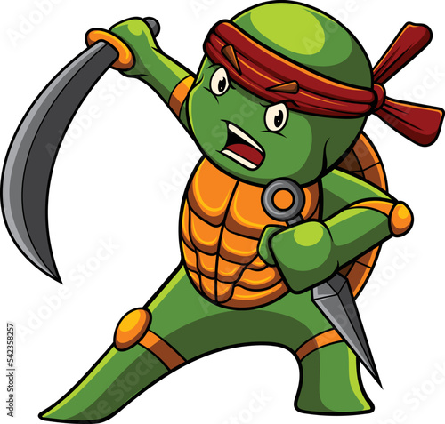 Illustration of dino holding sword and wearing ninja clothes perfect for shirts