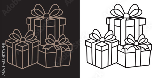 Present gift box icon. Vector isolated elements. Christmas gift icon illustration vector symbol. Surprise present linear design. Stock vector.