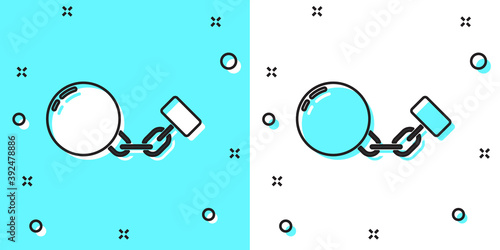 Black line Ball on chain icon isolated on green and white background. Random dynamic shapes. Vector.