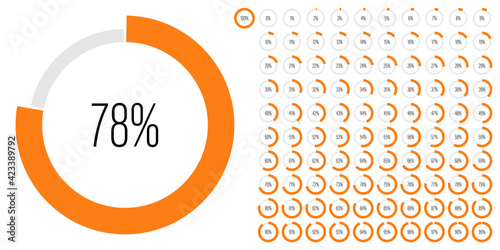 Set of circle percentage diagrams from 0 to 100. Can be used for web design, UI or infographic, vector illustration