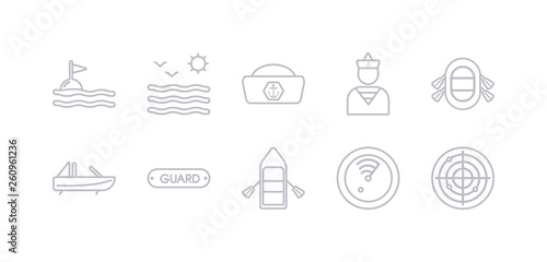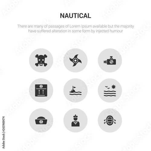 9 round vector icons such as rubber raft, sailor, sailor cap, sea, sea flag contains sea package, ship engine, ship engine propeller, skull and bones. rubber raft, sailor, icon3_, gray nautical