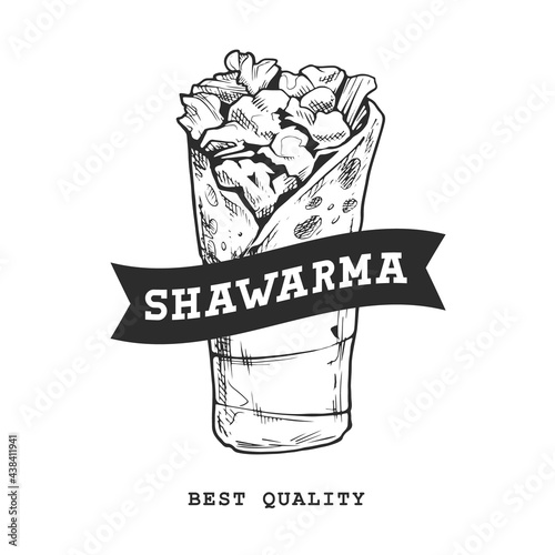 shawarma illustration meat silhouette food logo tortilla icon chicken outline kebab taco roll burrito tomato sandwich sauce doner vegetable shape turkish lunch beef for vector graphic background