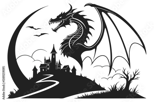 A stylized black and white illustration of a roaring lion's head with a spiky mane.