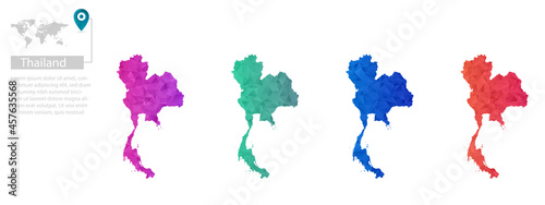Set of vector polygonal Thailand maps. Bright gradient map of country in low poly style. Multicolored country map in geometric style for your
