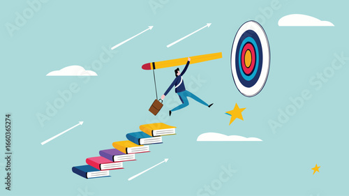 Colorful vector art depicting students eagerly engaging with educational items like books and alphabet, symbolizing the exciting return to school and the start of a new academic journey