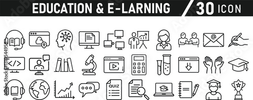 Educational institutions, administrative buildings, and learning concept vector icons collection for web, app, and print design Vector