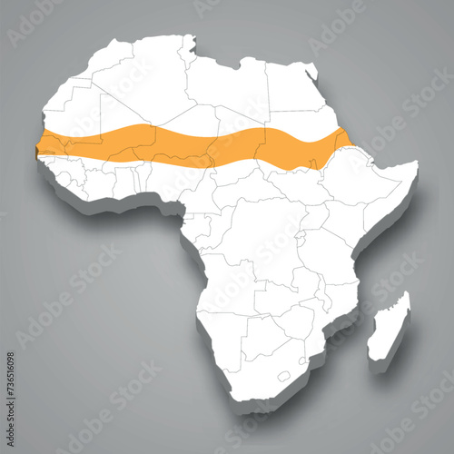 Isometric political map of Africa. Colorful land with country name labels on white background. 3D vector illustration