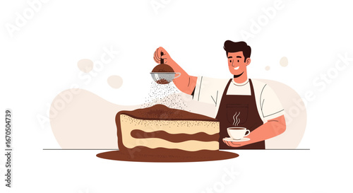 Young Enthusiastic Chef Preparing Delicious Dessert In The Kitchen Flat Vector